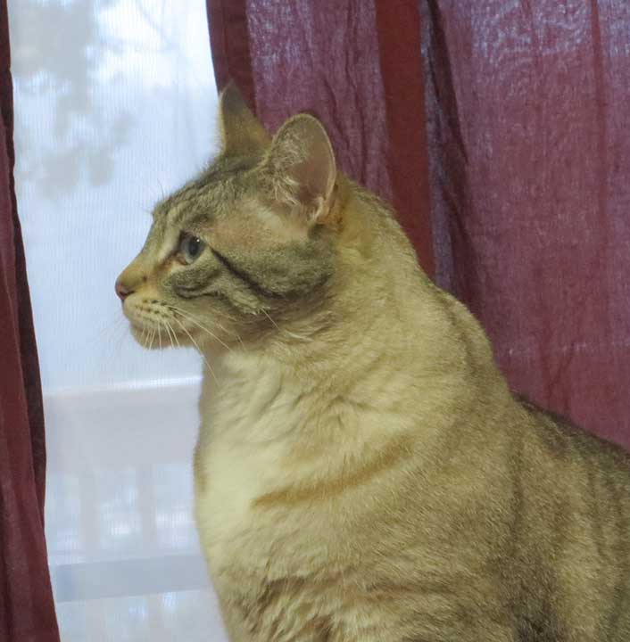 Thick overcast - we call it the marine layer. Basically you are in a cloud. Basically, my head is clogged and I would so rather stay in bed - until it lifts. Like - 2PM or so. Headache! But the 19 pound (my bad - he's on a diet) rescued male kitty cat 4 year-old long haired cuddle bug had demanded food. And petting. After having slept with me all night. He now sleeps beside me on the bed. Sir Thomas is a character. Fits right into my house. (Soft Fur!) (Everywhere!) I fed him. Petted him. Cuddled him. But - the two beagles need to get up. I need to get up. And the other cat is still kept separate from Thomas - we are working on that. I need to go downstairs.